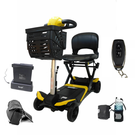 The Transformer scooter has a fully automatic mechanism with remote hand control. Just push a button to fold and unfold the scooter.
